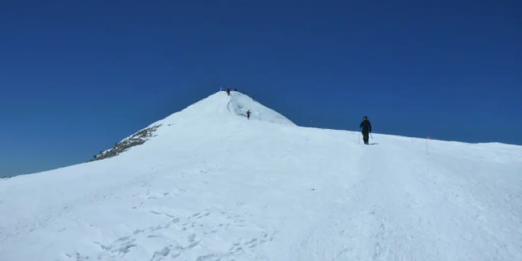 Już tylko zostaje mi do pokonania strome podejście i w końcu staję na najwyższym punkcie góry Elbrus.